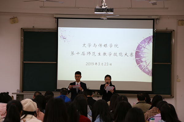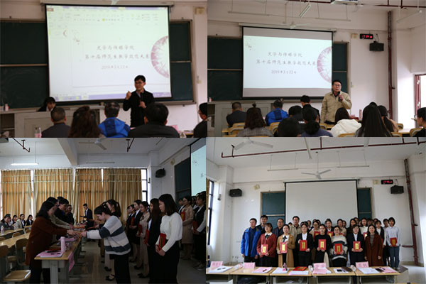 3月23日,文传学院在格致楼102教室举办了第十届师范生教学技能大赛。本次大赛由覃崇夏和兰伊琳主持,学院副经理陈代云教授,熊建军教授、寇占民教授,覃觅副教授和莫帆老师担任了本次比赛的评委。比赛从上午8:30分开始,经过一整天的角逐,一直持续到下午5:30才结束。