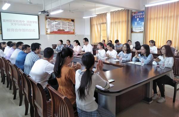 文传学院送实习生前往宜州区实验高中实习并举行实习实训基地挂牌仪式