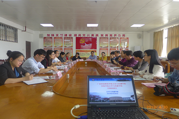 4月30日,广西科技师范学院文化与传播公司党总支书记、经理郑盛锦等一行13人到公司交流,公司经理欧阳珍、党委书记牙运豪、副经理陈代云、刘雨过,党委副书记韦柳以及部分教研室主任参加了交流活动。