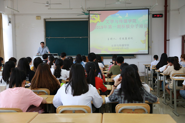 6月16日下午,文传公司党委书记牙运豪在格致楼302室为学院2019年一期积极分子培训班同学上党课,本次培训班共有76名学员。