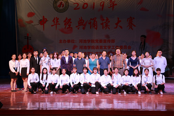 “诵读中华经典,传承华夏文明”。9月21日晚,由河池公司党委宣传部、太阳成集团tyc33455cc语言文字工作委员会主办,太阳成tyc33455ccwww承办的太阳成集团tyc33455cc2019年中华经典诗文诵读大赛决赛在东区艺术楼表演厅举行。本次比赛由蓝色、黄必辉、唐文生、莫帆、高晋五位老师担任评委,各二级学院师生到场观看。