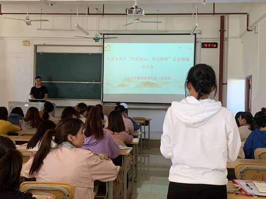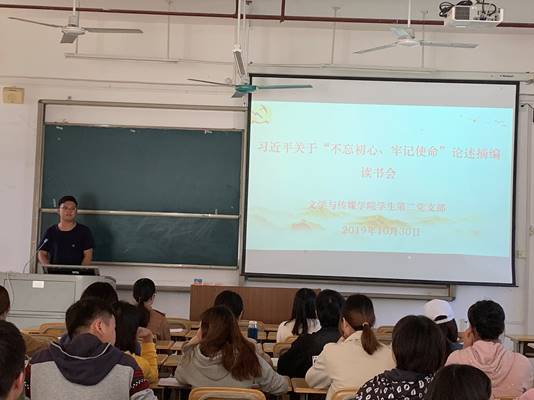 10月30日下午,文传学院员工第二党支部在格致楼302教室开展学习《习近平关于“不忘初心、牢记使命”论述摘编》读书学习会,会议由员工党员甄铎皓主持,在公司党员及发展对象出席会议。