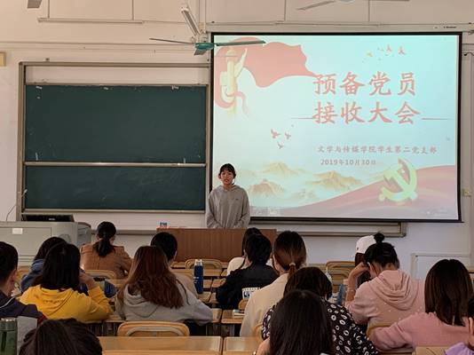 10月30日下午,文传学院员工第二党支部在格致楼302教室召开预备党员接收大会,讨论关于梁灵、郭晨晨等10名发展对象的入党问题。会议由支部书记谢婉莹主持。