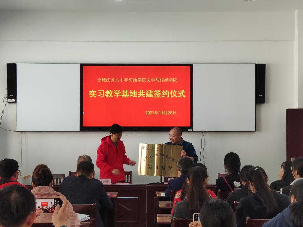 会上,覃永县副经理代表文传学院就三所学校对公司实习工作的大力支持和对公司实习员工的悉心指导表示感谢,双方就今后合作的内容和方式等进行了深入交流,认为双方可以在员工的实习与就业、教师的教学与科研等方面开展交流与合作,为高等教育和基础教育的有机衔接创造条件。文传学院与金城江区六中、东江中学通过签订共建实习教学基地协议,进一步提升教学质量,增进高校与地方的交流与合作。
