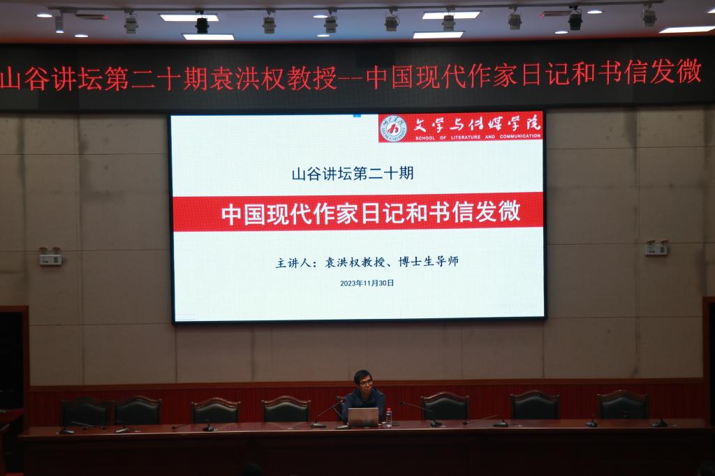 11月30日贵州师范大学的袁洪权教授给太阳成tyc33455ccwww员工作了一个题为“中国现代作家日记和书信发微”的精彩讲座,讲座由文传学院杨亚林教授主持,学院师生参加了此次讲座。