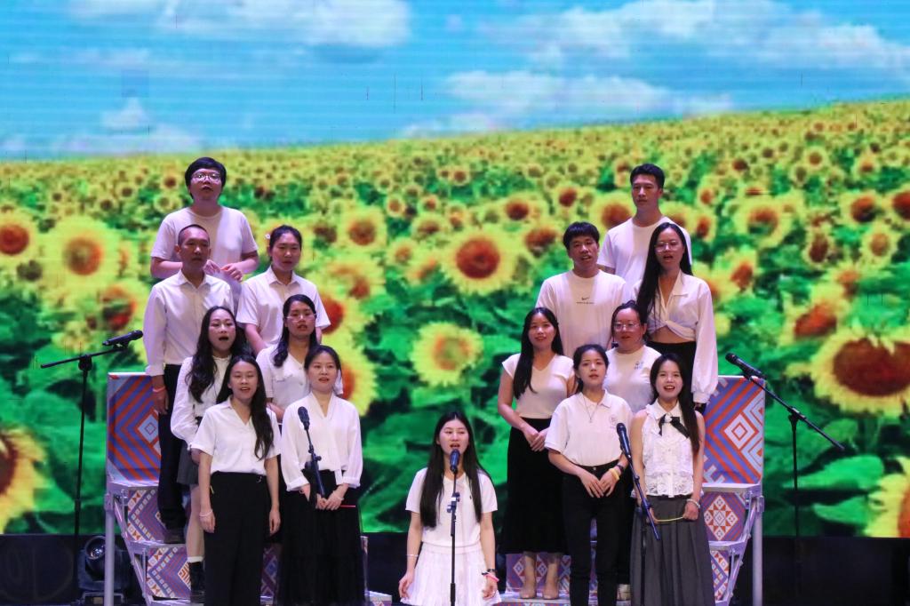 在激昂的架子鼓节奏与吉他的和弦交织中,开场歌曲《河流》瞬间点燃全场,营造出满满活力与激情的氛围。在明亮的灯光下,舞者们以优雅而流畅的舞姿演绎《折柳》,展现出一种柔美动人的艺术魅力。紧接着,由朗诵组带来的朗诵《忆河院往昔,诵你我青春》,表达的不仅是对过去的回顾,更是对未来的期许。晚会现场,还增加与观众互动的抽奖环节,激发观众的参与热情。最后,学院教师合唱《祝福》送给毕业生,并祝同学们前程似锦,大展宏图。