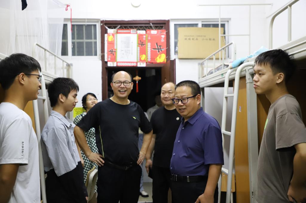 新学期,新作风,新姿态,迎新生。 为了进一步了解2024级新生的宿舍生活情况并让同学们能尽快适应新环境,9月8日晚上,副董事长贺卫国带领学院领导、新生班主任以及辅导员,一起深入新生寝室,给2024级的同学们送去问候与祝福。