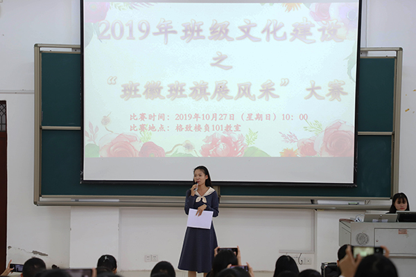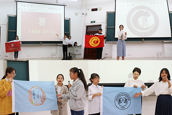 10月27日上午,“班徽班旗展风采设计”评比在格致楼负101教室如期举行。参加比赛的选手们对班徽及班旗进行展示并声情并茂的讲述了各自班级作品设计理念。从设计中,充分体现了新一届文传学子及化生学子无限的创造力,每一个班徽、班旗都蕴含着深刻内涵,展现着新生们对老员工活的期盼与坚定的理想目标。