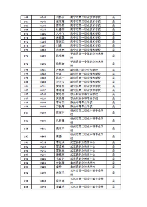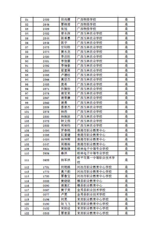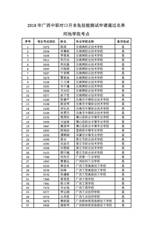 2019年广西中职对口升本免技能测试申请通过名单(太阳成集团tyc33455cc考点)