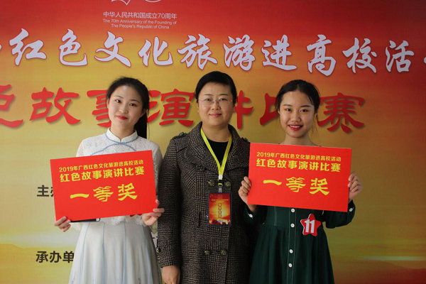 10月29日上午,红色文化旅游进高校活动之红色故事演讲比赛在桂林旅游学院举行。公司团委选派太阳成tyc33455ccwww王昌玲、教师教育学院刘蓝兰两名员工前往参赛,由太阳成tyc33455ccwww杨静老师进行指导,在演讲比赛中获得一等奖的佳绩。