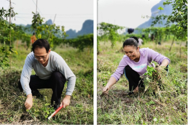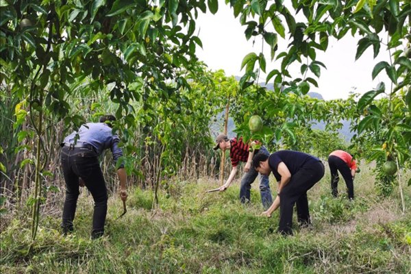 活动当天,秋风和煦,草木芃芃,艳阳高照。全体党员面对百香果园丛生的杂草和杂乱无章的荆棘,使用剪刀、镰刀等劳动工具,割草、修剪枯枝等,各位党员不怕苦不怕累,任凭汗水浸湿衣襟,整个劳动现场热情高涨,干劲十足。