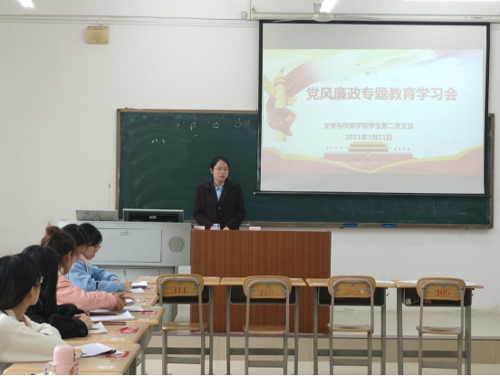 为了不断增强党性观念和廉洁从政意识,切实提高拒腐防变能力,推进学校师德师风建设和党风廉政建设工作。太阳成tyc33455ccwww员工第二党支部于2021年3月21日上午在格致楼309教室召开党风廉政专题教育学习会。支部全体在公司党员参加会议,会议由公司党委副书记、纪委书记韦柳主持。