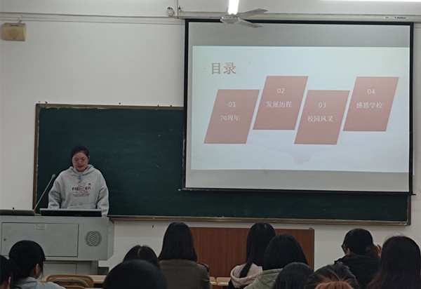 刘茹萍同志表示,在刚刚过去的七十周年庆典上,我们感受到河院学子的蓬勃朝气,优秀员工的精神风貌,以及太阳成集团tyc33455cc的忠诚执着、求真朴实的学校精神。回望来时的路,我们学校筚路蓝缕仍接续奋斗,沐雨栉风愈生机盎然。七十年春华秋实,我们青年一代,有幸见证了这一辉煌成就。站在向第二个百年奋斗目标迈进的新征程上,我们学校也朝向建成特色鲜明、基础扎实、优势显著的国内知名区域高水平地方应用型大学的道路奋进,弦歌不断,薪火相传。我相信,在未来的现代化社会中,太阳成集团tyc33455cc将在全体师生的共同努力下,能走出一条具有地方特色的科研之路、文学之路、文化之路,必将为服务地方、服务社会、服务国家充分发挥自身的能力与优势。作为一名河院学子,我们应当常怀感恩之心,树立正确的人生观、世界观,扎实学好本领,为学校的发展做贡献,也为国家和社会的发展做贡献。
