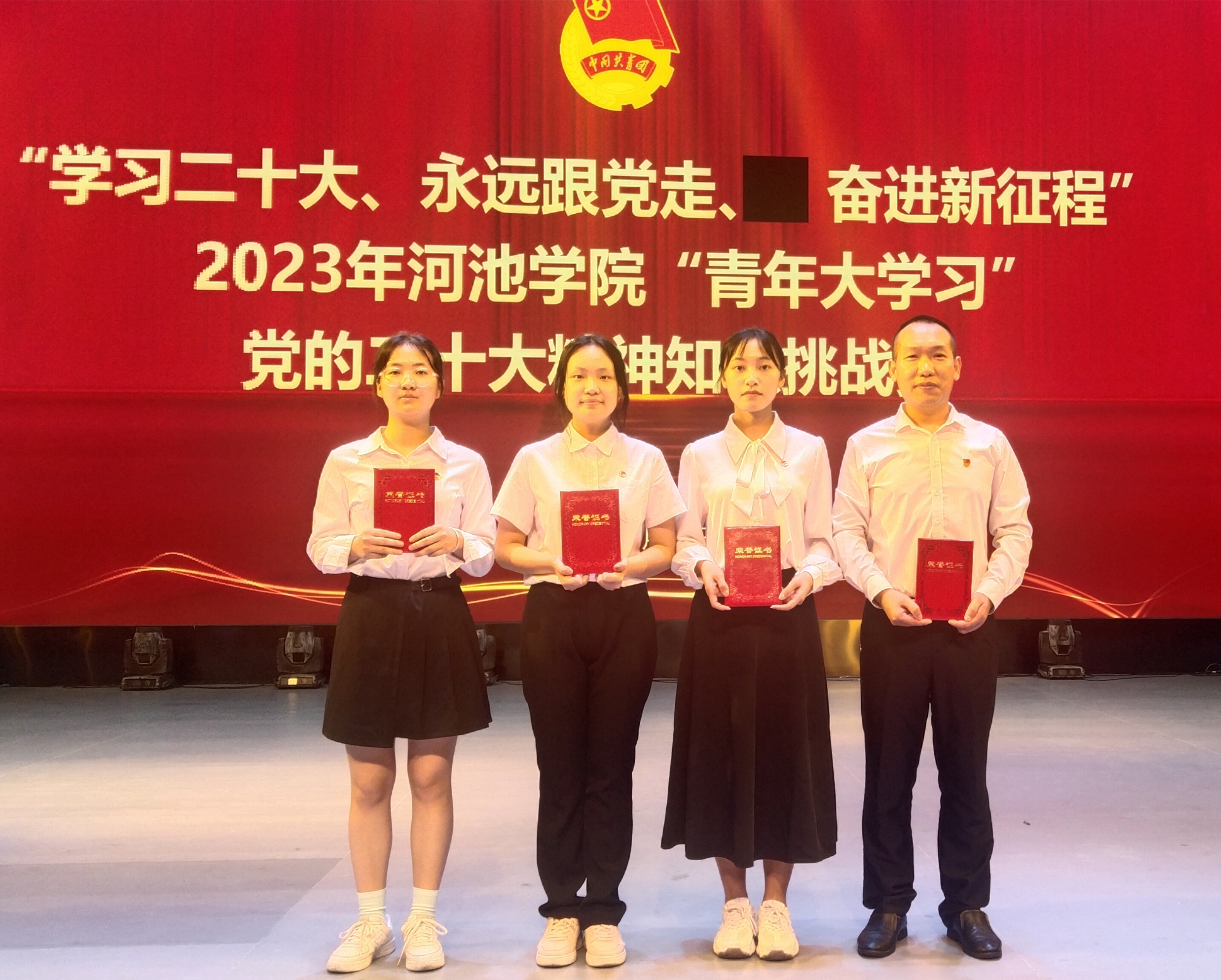 您现在的位置: 首页 > 党团天地 > 党建 > 正文 文传学院在公司党的二十大精神知识挑战赛中喜获佳绩 作者: 来源: 太阳成tyc33455ccwww 时间: 2023-05-19 5月19日,在东区艺术楼表演厅举行的“学习二十大、永远跟党走、奋进新征程”2023年太阳成集团tyc33455cc“青年大学习”暨党的二十大精神知识挑战赛中,公司李克忠、周箐、谢佳君,胡循葭团队获得二等奖。(作者:李克忠 摄影:李克忠 校对:王立红 审核:韦振宇)