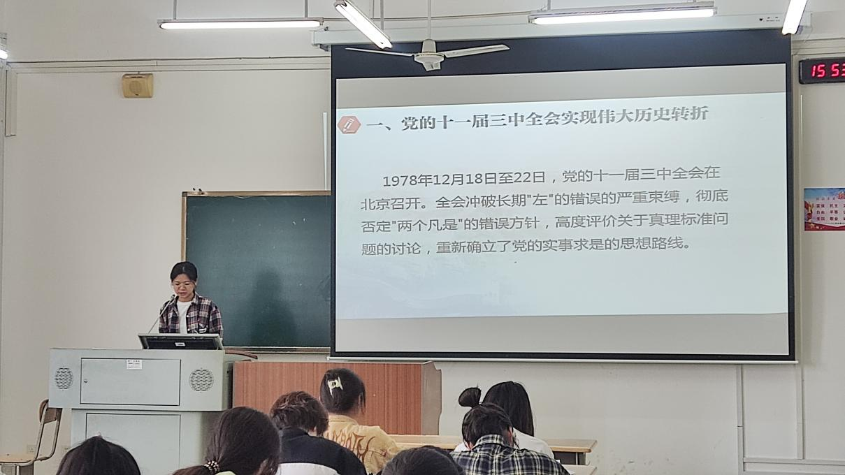 活动中,李孝妍同志带领我们从党的十一届三中全会实现伟大历史转折和农村改革、创办经济特区和改革开放的起步两方面进行学习。在学习的过程中,吴宣霖、郭乔燕等党员同志对此次主题活动发表了自己的感想。