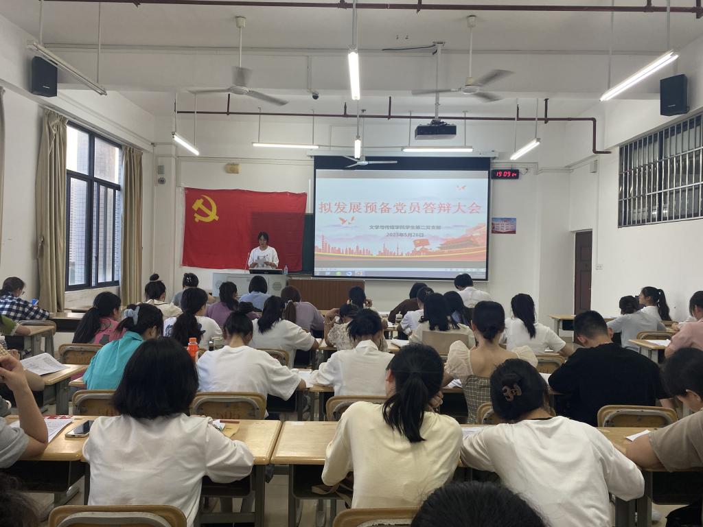 2023年5月26日,文传学院员工第二党支部在格致楼508教室召开了2023年上半年拟发展预备党员答辩会。本次会议由文传学院员工第二党支部书记韦金朋主持,全体在校生党员参加。