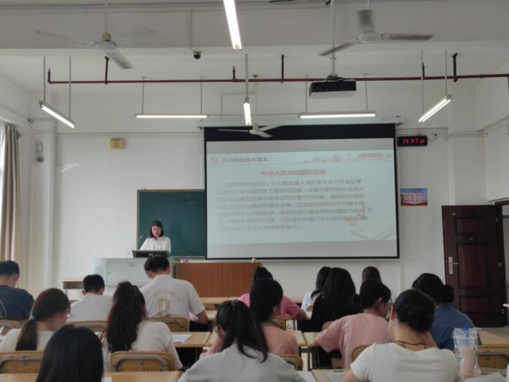本次主题由支部党员龙丹带领学习。主要介绍了什么是《中华人民共和国民法典》(以下简称《民法典》),并带领支部党员共同学习了编篡《民法典》的意义、《民法典》的编篡历程、《民法典》的指导思想和总体要求以及《民法典》的主要内容,并进行了《民法典》亮点内容解读。她强调宣传、普及、认识、学好《民法典》对于我国全面构建中国特色社会主义法治体系的意义十分重大,对个人而言,对我们的生活也会起到知法懂法的良好作用,也让我们更加能认识并保障好自己的合法权益。