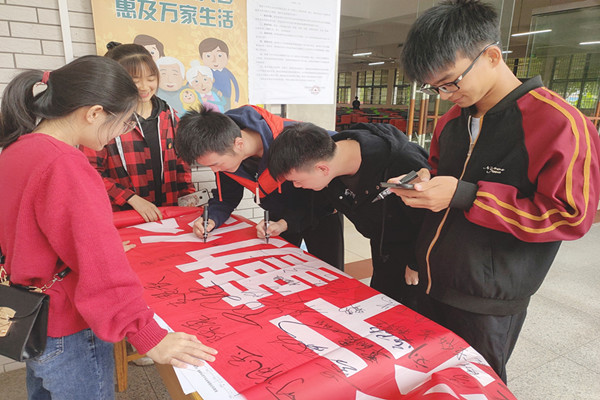 10月19日中午,太阳成tyc33455ccwww在东区、西区食堂前开展“厉行节约,反对浪费”师生签名活动。随着一批批就餐者陆续到来,志愿者热情地向前来就餐的师生宣传节俭知识并发出倡议,师生纷纷提笔,在红色横幅上郑重签下自己的名字,以实际行动承诺“厉行节俭,反对浪费 ”。