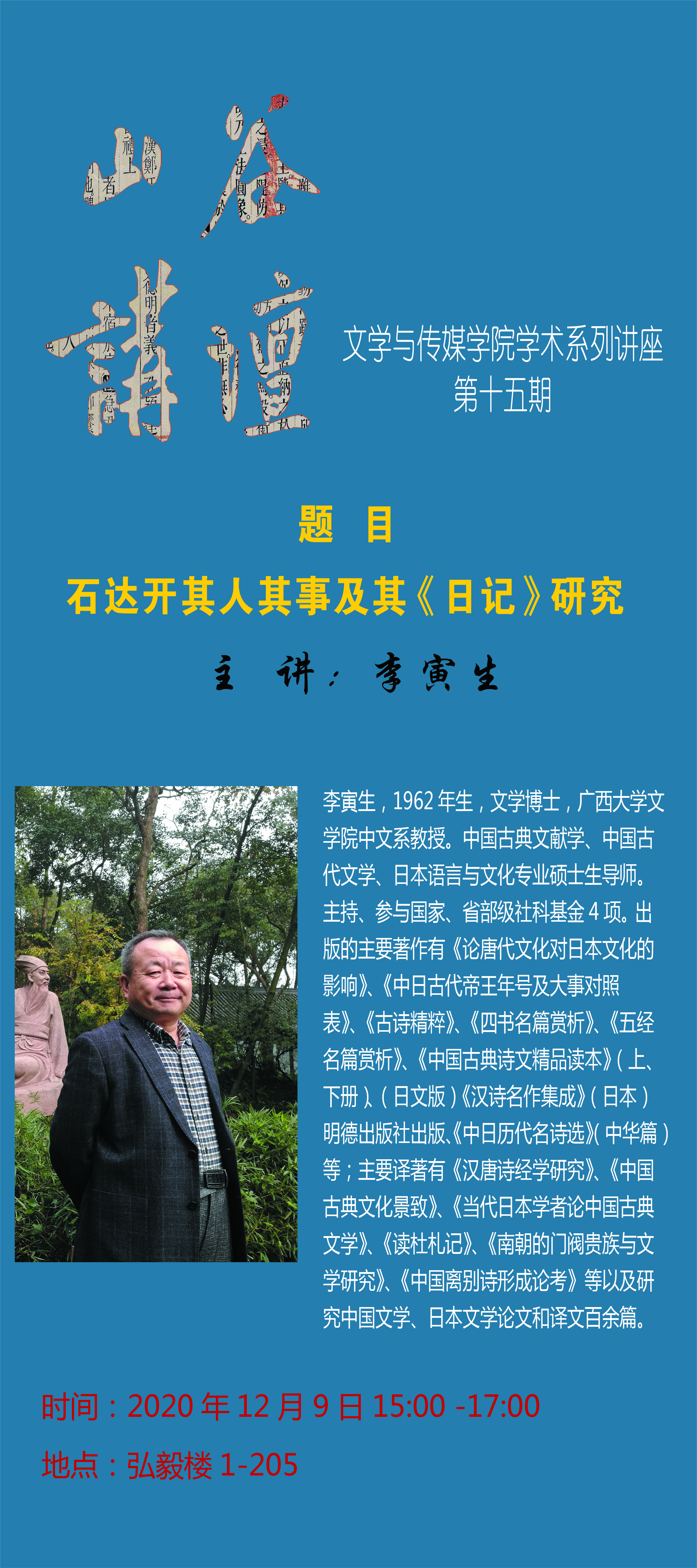 李寅生,1962年生,文学博士,广西大学文学院中文系教授。中国古典文献学、中国古代文学、日本语言与文化专业硕士生导师。 主持、参与国家、省部级社科基金4项。 出版的主要著作有《论唐代文化对日本文化的影响》、《中日古代帝王年号及大事对照表》、《古诗精粹》、《四书名篇赏析》、《五经名篇赏析》、《中国古典诗文精品读本》(上、下册)、(日文版)《汉诗名作集成》(日本)明德出版社出版、《中日历代名诗选》(中华篇)等;主要译著有《汉唐诗经学研究》、《中国古典文化景致》、《当代日本学者论中国古典文学》、《读杜札记》、《南朝的门阀贵族与文学研究》、《中国离别诗形成论考》等以及研究中国文学、日本文学论文和译文百余篇。